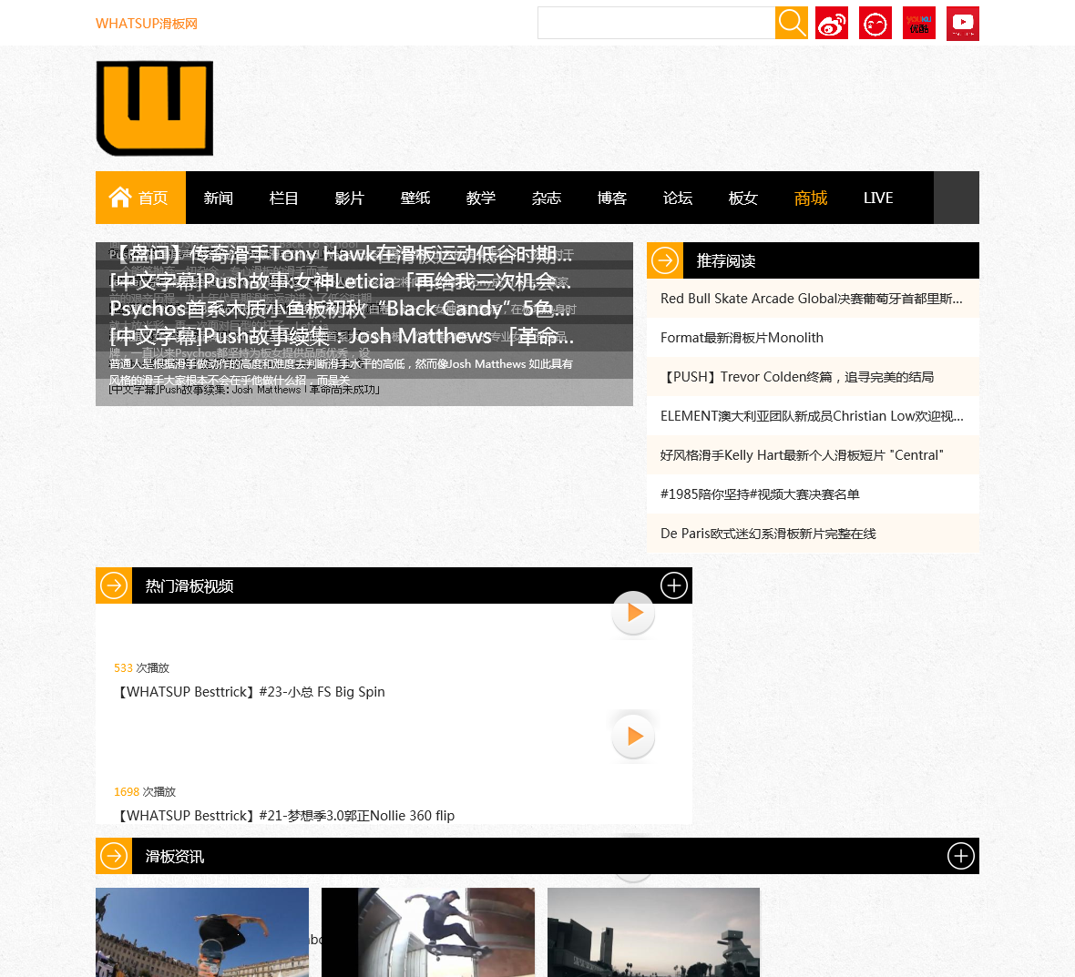 WHATSUP滑板网 作为沸点滑板打造的第一本专业滑板杂志《Whatsup》的在线网站,是集滑板新闻,滑板教学及滑板视频等全方位滑板资讯的滑板门户网