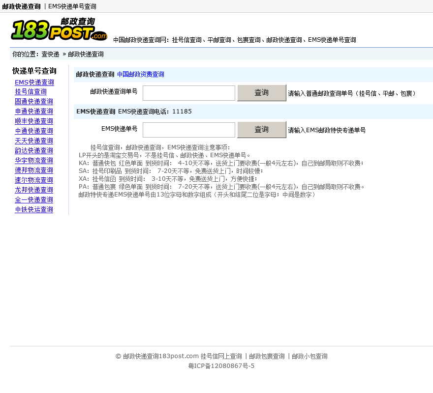中国邮政快递查询于2020-08-03被0702投稿网收录,网站相关信息来自互联网或网友分享!由于(中国邮政快递查询)网站内容动态属性,时刻在变动,本站无法保证(中国邮政快递查询)网站内容真实可靠!请大家查阅时,谨慎选择、自辩真伪,感谢您的理解与支持。如果您在访问(中国邮政快递查询)时发现:网址失效、或网站存在非法等相关内容,请及时联系我们,我们会第一时间处理。