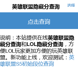 本站提供在线英雄联盟隐藏分查询和LOL隐藏分查询,方便LOL玩家更加方便的玩英雄联盟。马上查一下你的LOL隐藏分是多少吧