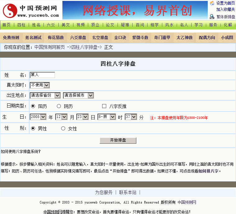 中国预测网四柱八字在线排盘