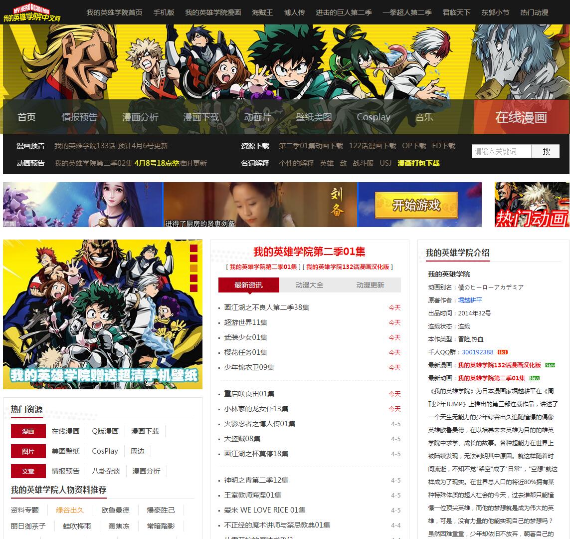- 网站名称:我的英雄学院中文网