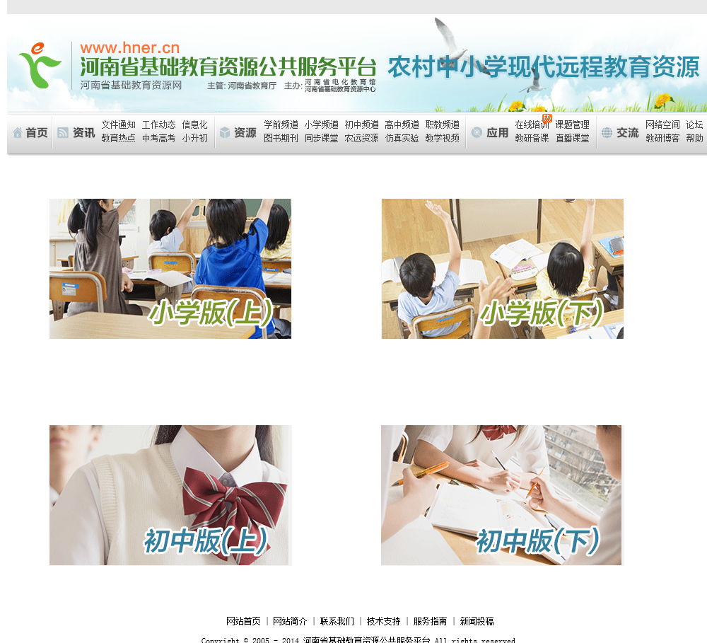 河南省基础教育资源公共服务平台(河南省基础教育资源网)是由河南省教育厅主管、河南省电化教育馆(河南省基础教育资源中心)主办的,为广大教师、学生、家长以及教育管理工作者等用户,提供教育教学信息化综合服务的信息资源中心和公共服务平台。网站于2005年经河南省教育厅批准正式开通,期间经过不断改版完善...