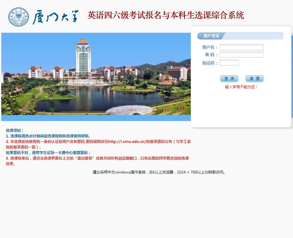 厦门大学本科生选课系统