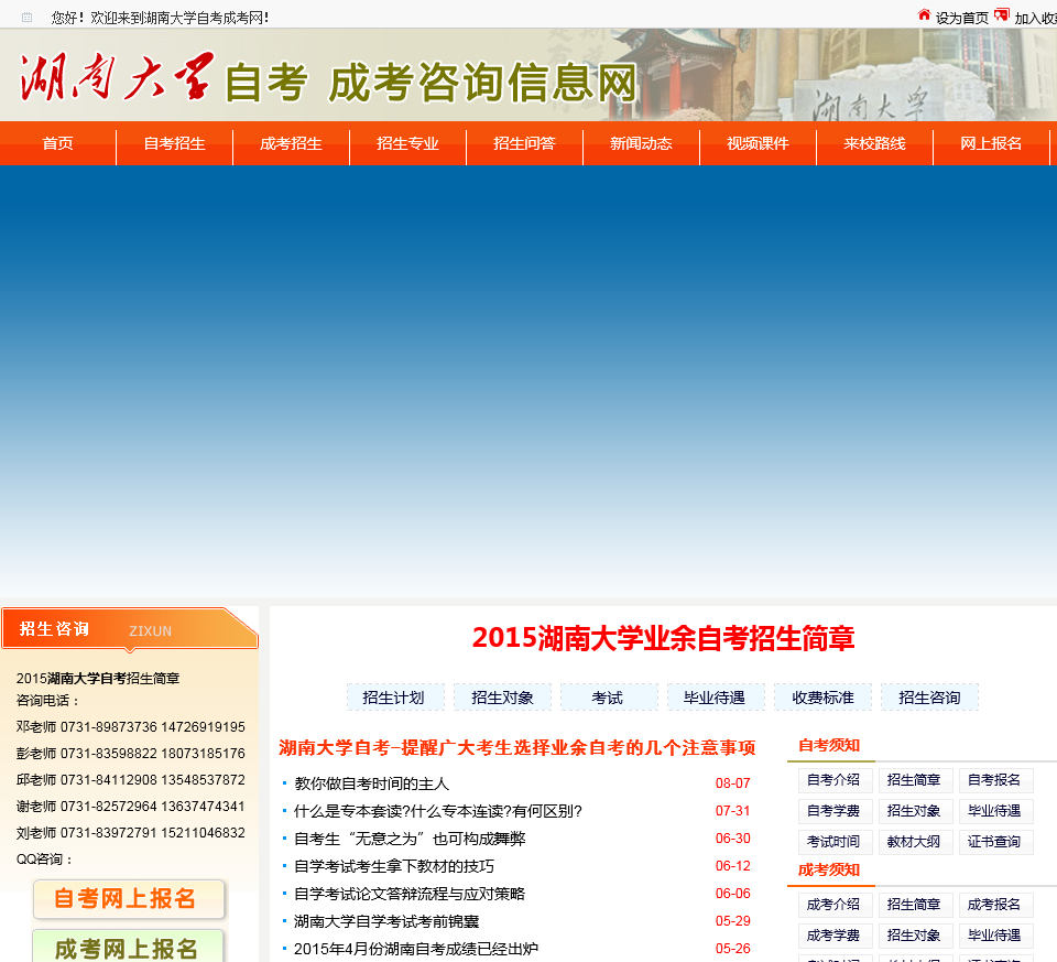 湖南大学自考于2020-08-05被0702投稿网收录,网站相关信息来自互联网或网友分享!由于(湖南大学自考)网站内容动态属性,时刻在变动,本站无法保证(湖南大学自考)网站内容真实可靠!请大家查阅时,谨慎选择、自辩真伪,感谢您的理解与支持。如果您在访问(湖南大学自考)时发现:网址失效、或网站存在非法等相关内容,请及时联系我们,我们会第一时间处理。