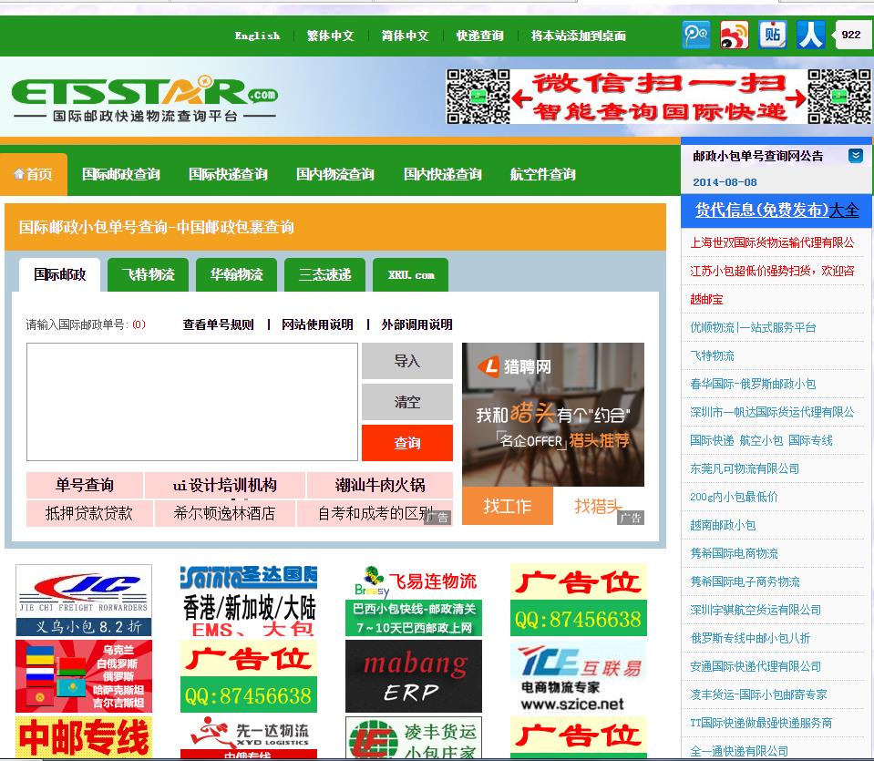 当前位置:主页 > 网站目录 > 国际邮政快递物流查询平台etsstar.com