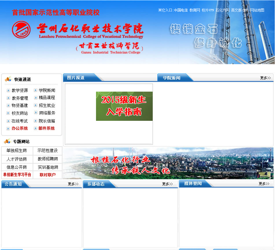 兰州石化职业技术学院于2020-08-06被0702投稿网收录,网站相关信息来自互联网或网友分享!由于(兰州石化职业技术学院)网站内容动态属性,时刻在变动,本站无法保证(兰州石化职业技术学院)网站内容真实可靠!请大家查阅时,谨慎选择、自辩真伪,感谢您的理解与支持。如果您在访问(兰州石化职业技术学院)时发现:网址失效、或网站存在非法等相关内容,请及时联系我们,我们会第一时间处理。