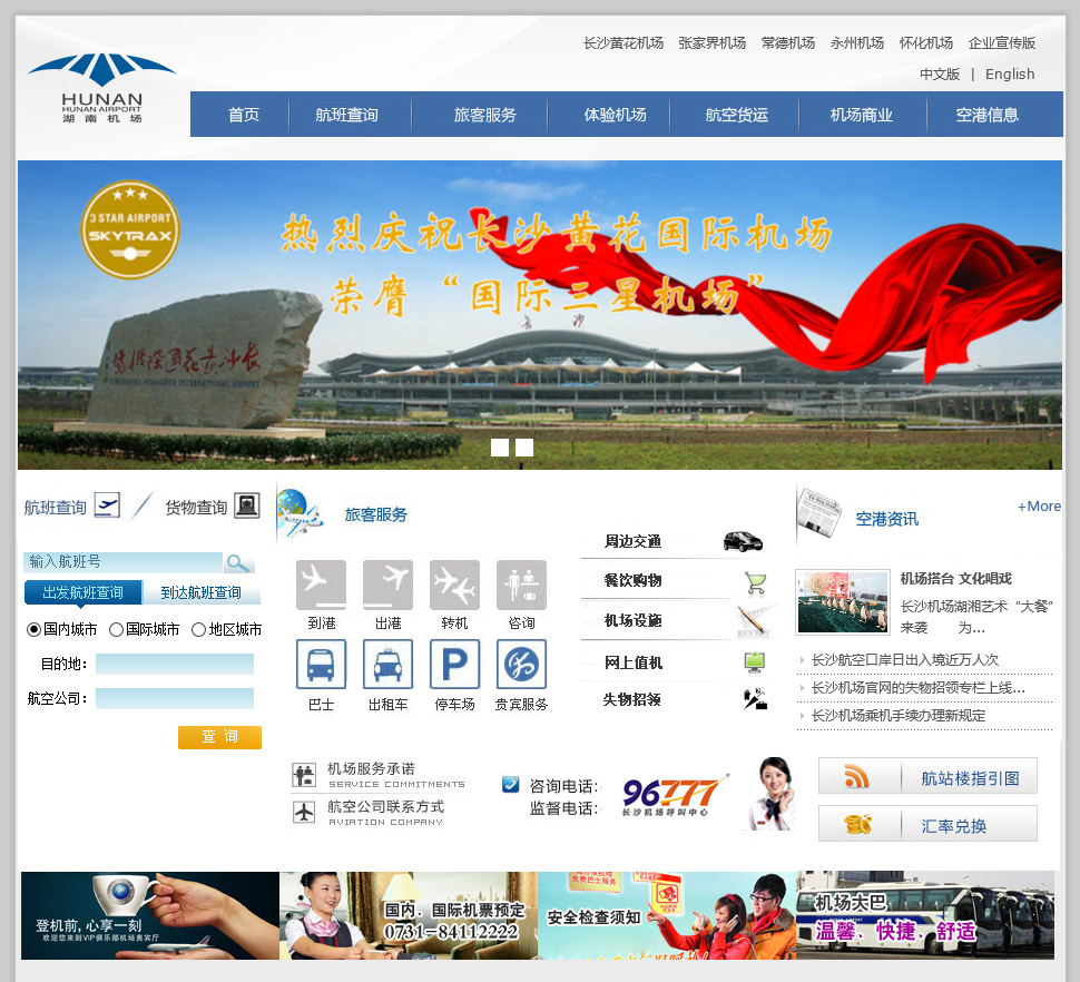 湖南省机场管理集团有限公司旅游客服版网站。为旅客提供航班查询、货运查询等服务。