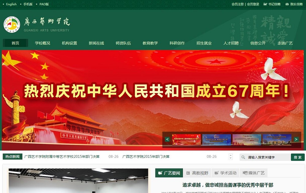 广西艺术学院于2020-08-08被0702投稿网收录,网站相关信息来自互联网或网友分享!由于(广西艺术学院)网站内容动态属性,时刻在变动,本站无法保证(广西艺术学院)网站内容真实可靠!请大家查阅时,谨慎选择、自辩真伪,感谢您的理解与支持。如果您在访问(广西艺术学院)时发现:网址失效、或网站存在非法等相关内容,请及时联系我们,我们会第一时间处理。