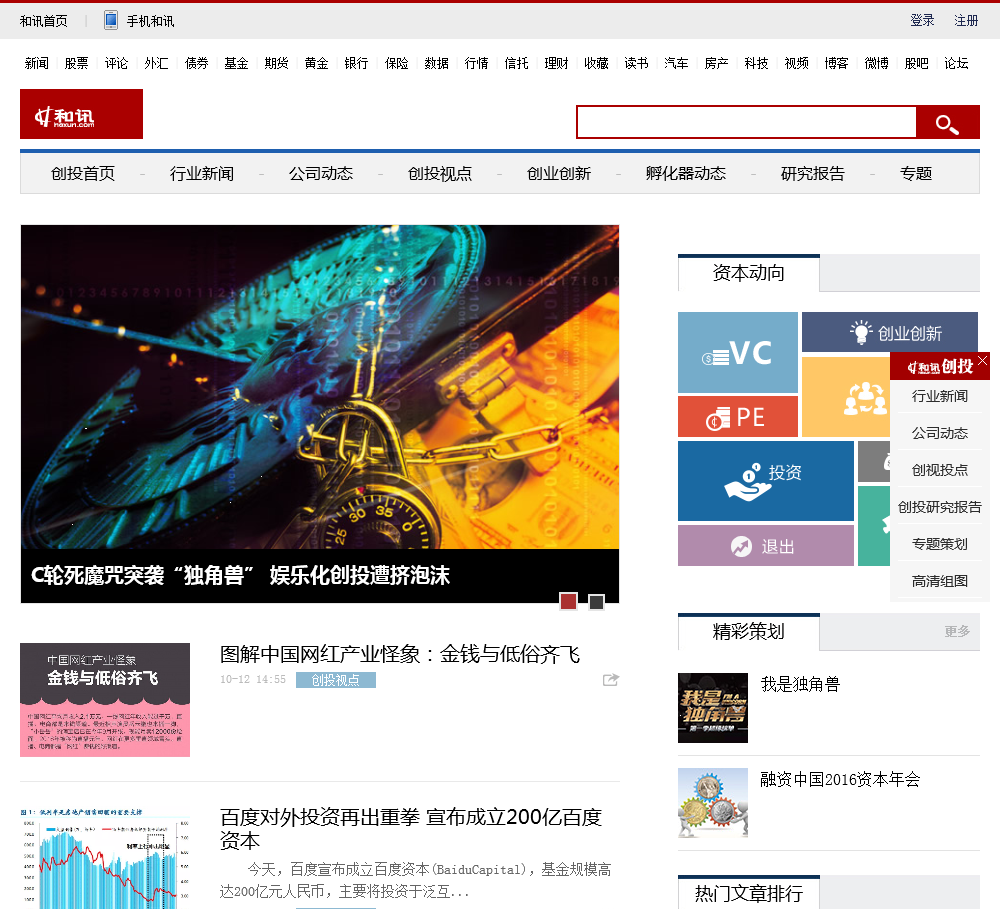 - 网站名称:和讯创投