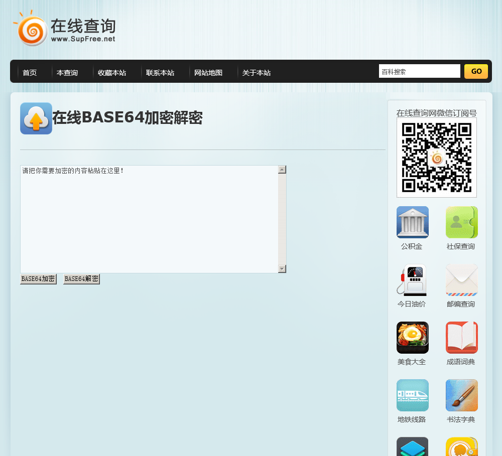 当前位置:主页 > 网站目录 > 在线BASE64加密解密base64.supfree.net