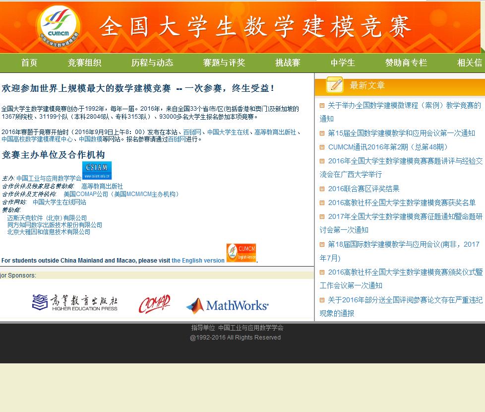 当前位置:主页 > 网站目录 > 全国大学生数学建模竞赛mcm.edu.cn