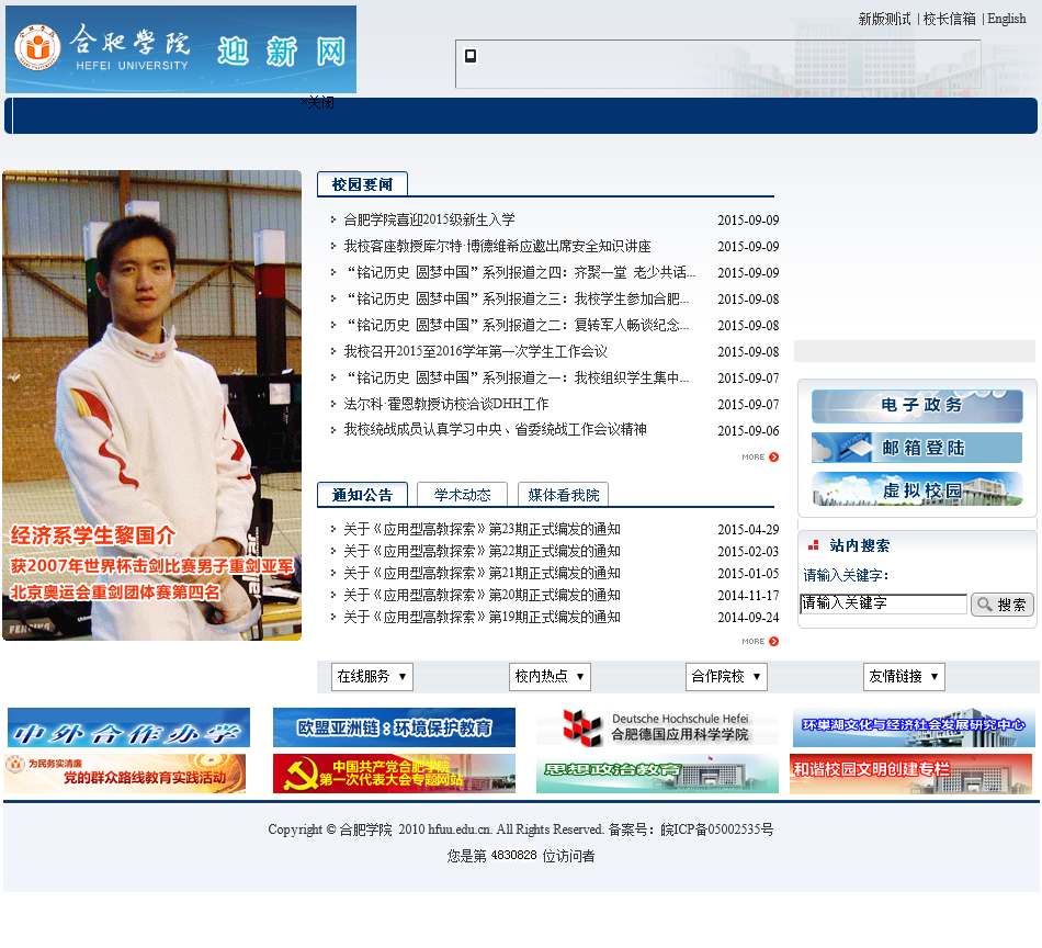 合肥学院于2020-08-09被0702投稿网收录,网站相关信息来自互联网或网友分享!由于(合肥学院)网站内容动态属性,时刻在变动,本站无法保证(合肥学院)网站内容真实可靠!请大家查阅时,谨慎选择、自辩真伪,感谢您的理解与支持。如果您在访问(合肥学院)时发现:网址失效、或网站存在非法等相关内容,请及时联系我们,我们会第一时间处理。