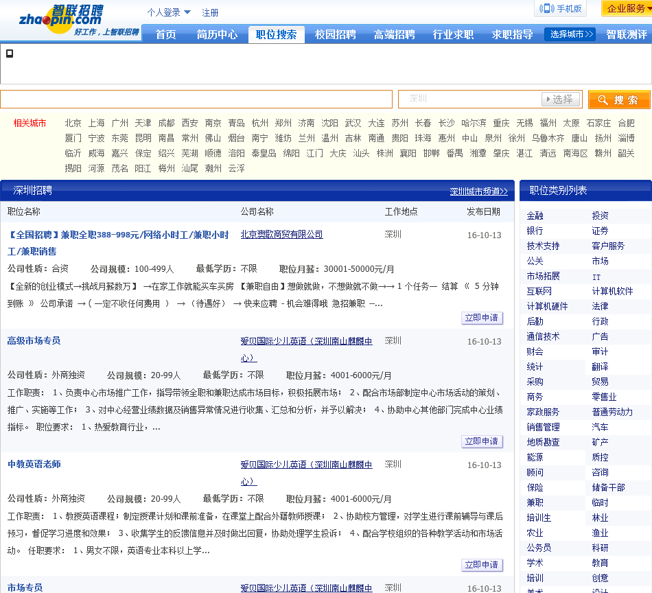 - 网站地址:shenzhen.zhaopin.com