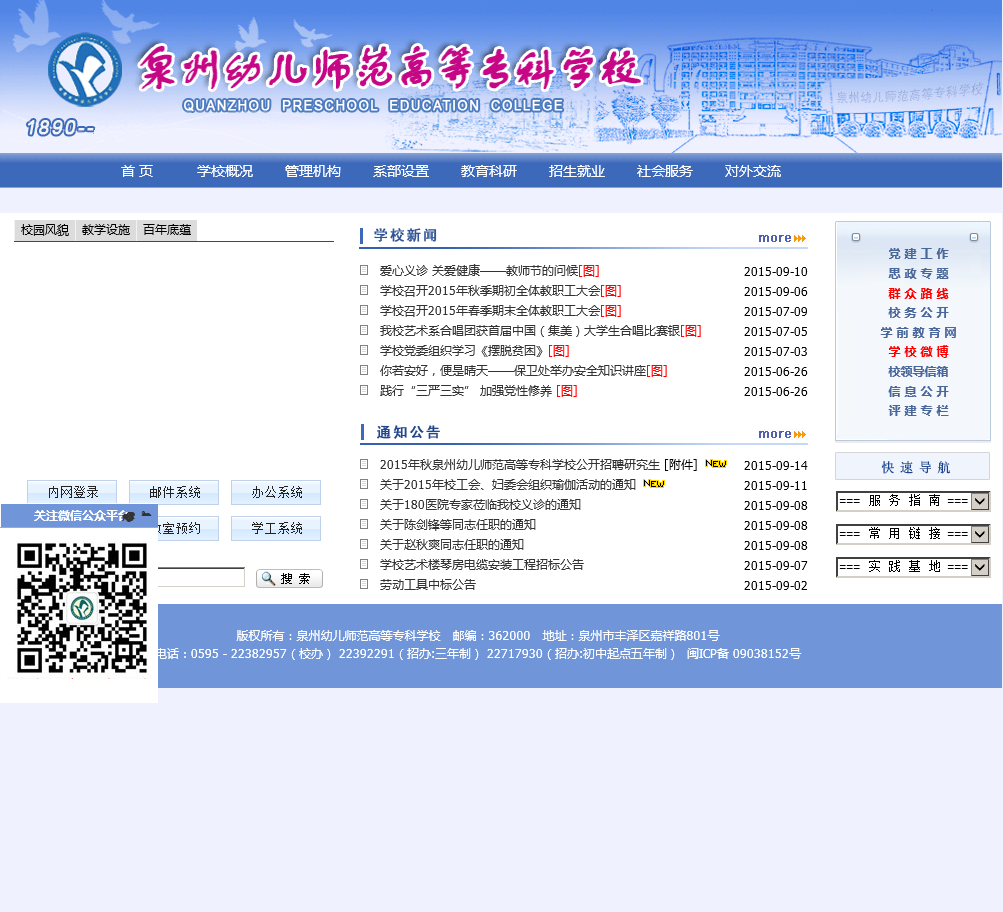 泉州幼儿师范高等专科学校于2020-08-09被0702投稿网收录,网站相关信息来自互联网或网友分享!由于(泉州幼儿师范高等专科学校)网站内容动态属性,时刻在变动,本站无法保证(泉州幼儿师范高等专科学校)网站内容真实可靠!请大家查阅时,谨慎选择、自辩真伪,感谢您的理解与支持。如果您在访问(泉州幼儿师范高等专科学校)时发现:网址失效、或网站存在非法等相关内容,请及时联系我们,我们会第一时间处理。