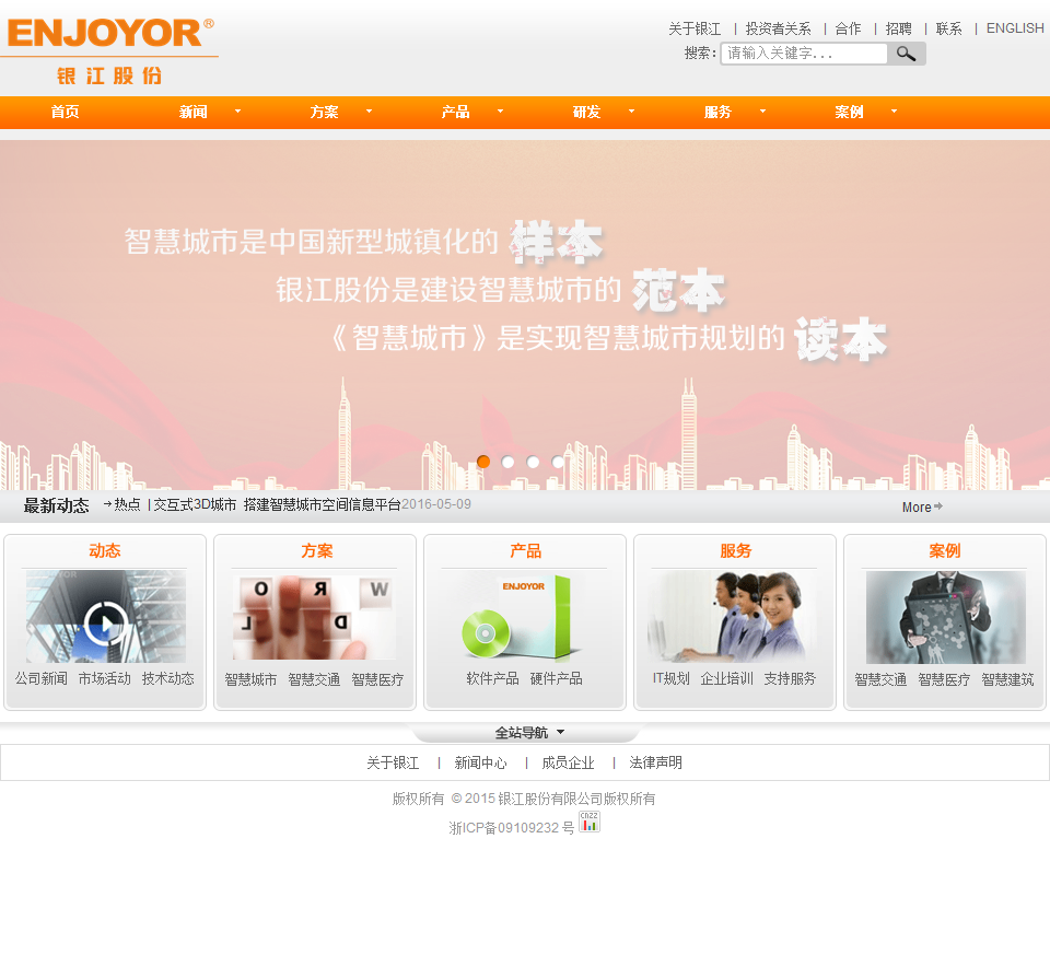 银江股份于2020-08-09被0702投稿网收录,网站相关信息来自互联网或网友分享!由于(银江股份)网站内容动态属性,时刻在变动,本站无法保证(银江股份)网站内容真实可靠!请大家查阅时,谨慎选择、自辩真伪,感谢您的理解与支持。如果您在访问(银江股份)时发现:网址失效、或网站存在非法等相关内容,请及时联系我们,我们会第一时间处理。