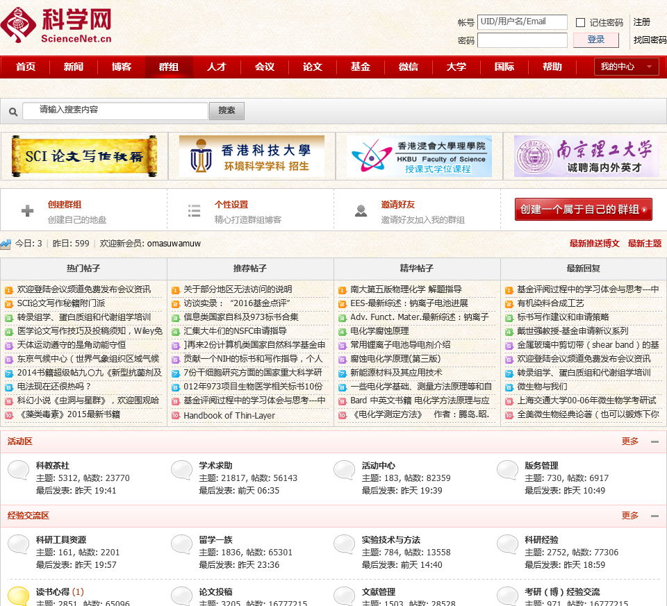 - 网站名称:科学网群组